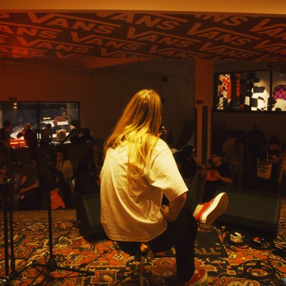 A Vans abriu as portas do seu espaço conceito para criar o ambiente perfeito para uma experiência musical única: luz baixa, atmosfera envolvente e o palco montado a poucos passos da plateia, reforçando o clima de proximidade que Noah buscou desde o início da sua carreira solo.